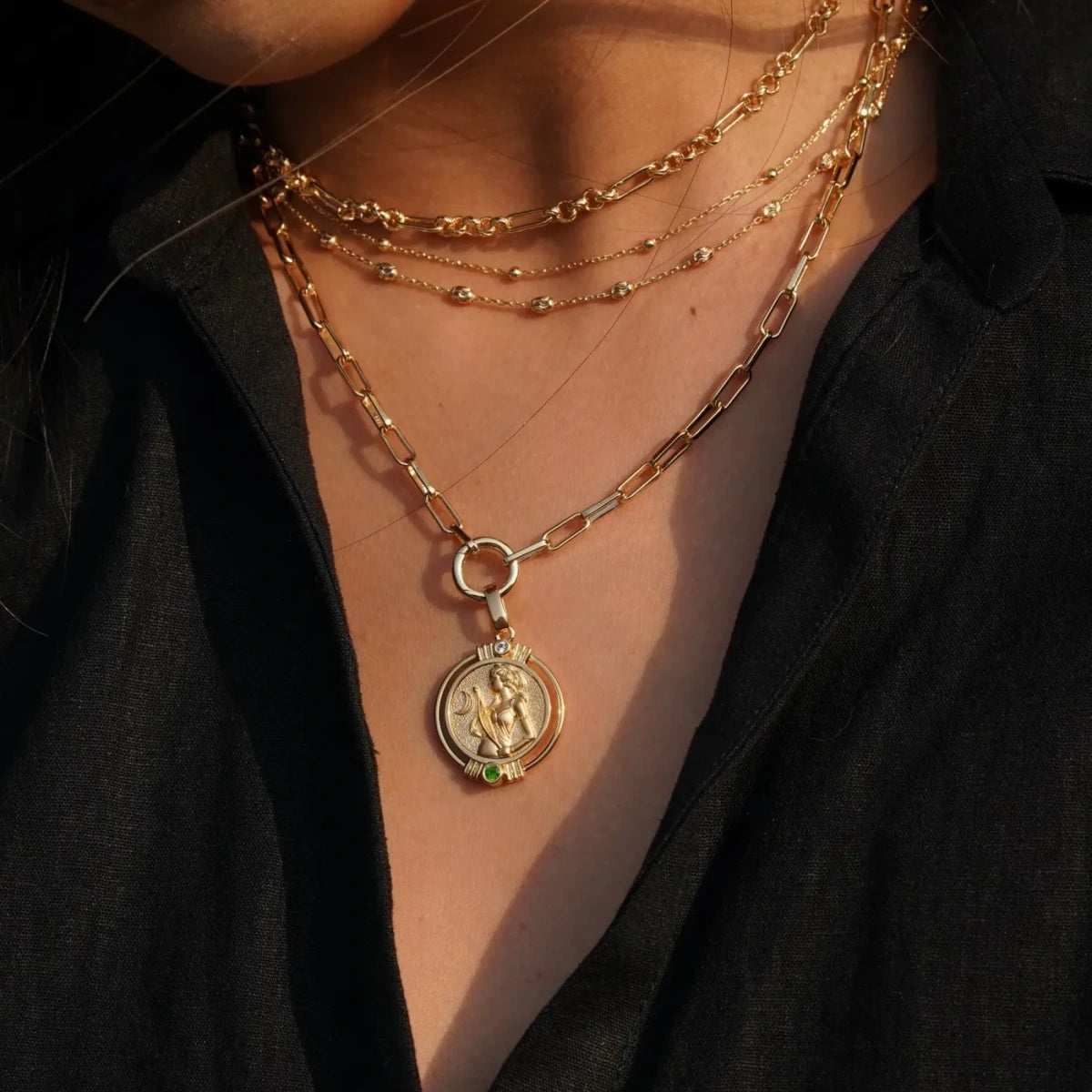 I saw how the model styled the necklace with the rose quartz extender and had to get the same combo — it looked too good to pass up! The rose quartz they used is so clear and light pink, and it really matches the Aphrodite pendant. They even added an extra matching chain in my order — so thoughtful!