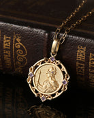 Hemos capturado esta imagen en una moneda redonda, rodeada de amatista natural pura. La amatista posee una poderosa energía que favorece la suerte profesional, impulsando la energía y la fortuna de las mujeres en su vida profesional.